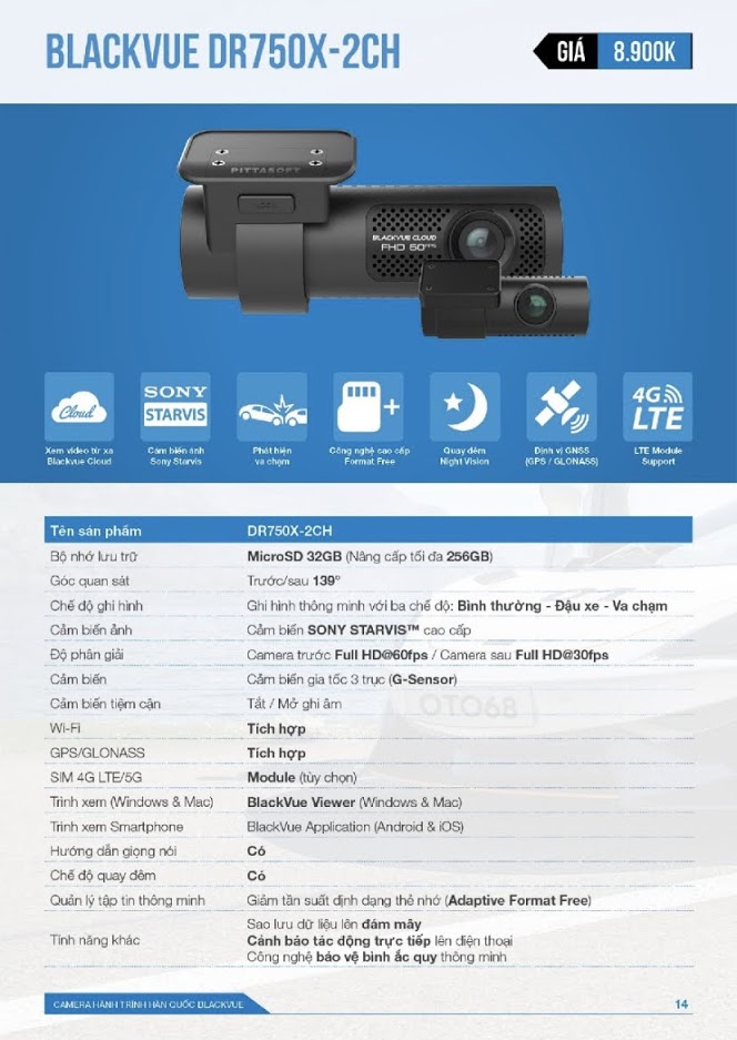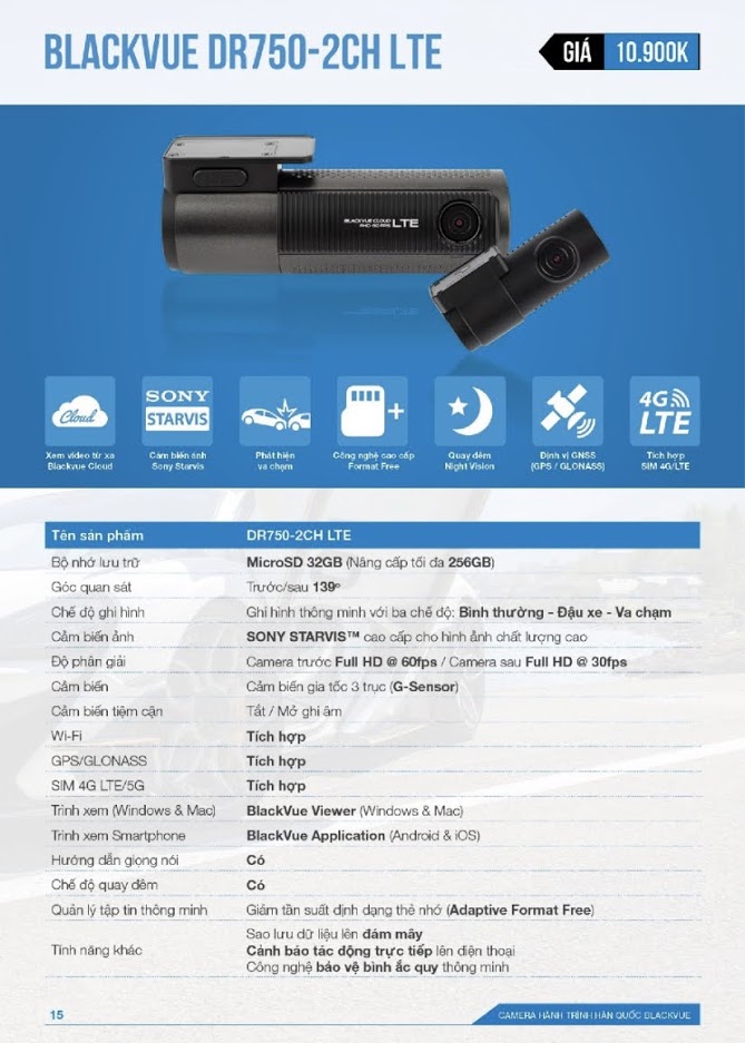 - DR750-LTE: tích hợp khe cắm sim cho phép tự động kết nối mạng và sử dụng Blackvue Cloud